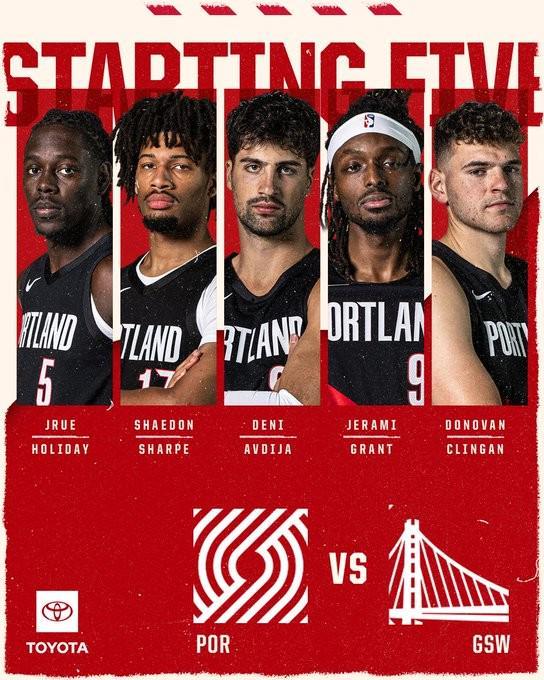 杨瀚森继续替补,开拓者首发阵容不变,勇士队库里霍福德首发