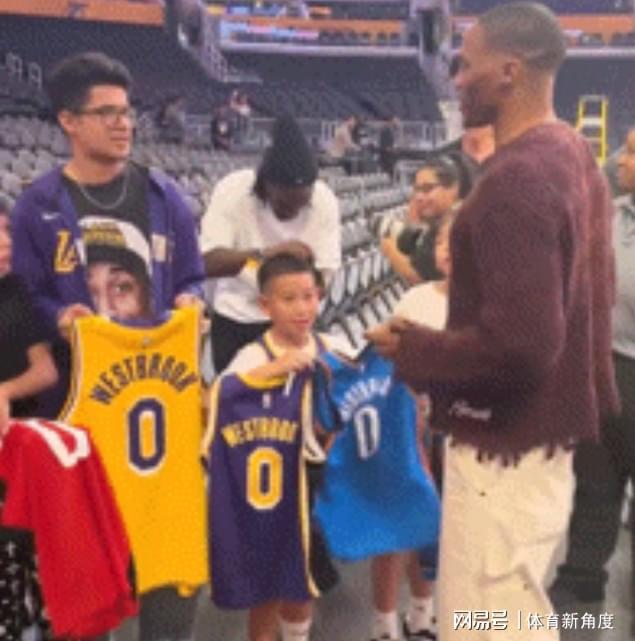 对于贝弗利的观点,大家自然是见仁见智。但可以肯定的是,威少对湖人时期确实心存芥蒂。有一次,在给小球迷签名时,他犹豫许久,最终还是跳过了那个手持湖人球衣的小球迷。不过,在坚守原则的同时,威少也送出了自己手上的腕带作为补偿。