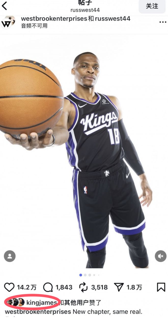 但是刚刚曝出了詹姆斯很虚伪,威少看不顺眼他的消息之后,现在詹皇就用自己的方式给出了回应。你说我虚伪?但我很真实,威少刚刚和国王队达成了签约,并且晒出了定妆照,迎接新赛季,而其中第1个带头点赞的就是詹姆斯。