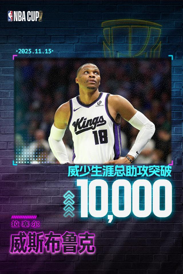 今天对阵森林狼,威少出战31分钟,再度贡献13分10篮板14助攻,拿下三双的同时,也迎来了自己生涯10000次助攻的里程碑。
