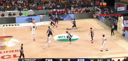 第一节中国男篮廖三宁拿下6分,韩国男篮李贤重拿下12分,首节战罢中国男篮16-24落后韩国男篮